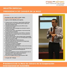 En esta edición especial del boletín, encontrará los principales resultados tanto a nivel general como en el marco de los grupos de trabajo, comunicaciones y gestión del conocimiento desarrolladas por la Mesa de Género de la Cooperación Internacional (MGCI) bajo la presidencia de la Embajada de Canadá (2016 - 2018).
