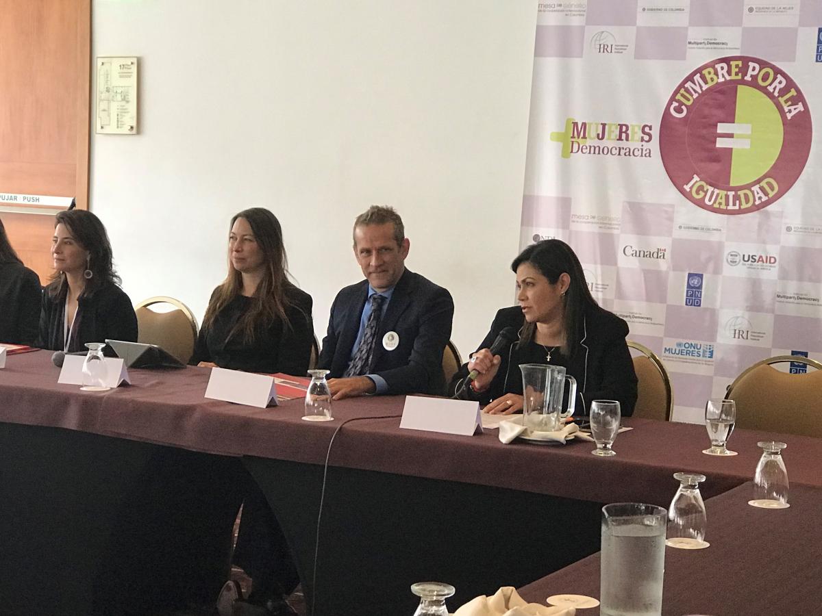 Los días 4 y 5 de Julio, se llevó a cabo la Cumbre Nacional por la Igualdad en el marco de la alianza entre el Ministerio del Interior, la Consejería Presidencial para la Equidad de la Mujer y la Mesa de Género de la Cooperación Internacional en Colombia, dando continuidad a las acciones adelantadas en el marco de la estrategia Más Mujeres Más Democracia, apuesta conjunta del Gobierno Nacional y la Cooperación Internacional. La organización de la Cumbre, contó con el liderazgo de ONU Mujeres, el Programa de las Naciones Unidas para el Desarrollo – PNUD- , la Embajada de Canadá, el Instituto Nacional Demócrata – NDI -, La Agencia de los Estados Unidos para el Desarrollo Internacional – USAID -, el Instituto Holandés para la Democracia Multipartidaria -NIMD - y el Instituto Republicano Internacional – IRI-.
